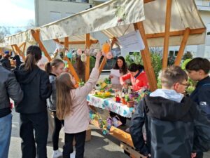 Na šetalištu su izložili svoje rukotvorine, uskrsne dekoracije i ostale stvari koje su izradili na B1 izvannastavnim aktivnostima.